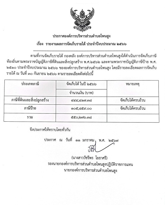 ตามที่งานจัดเก็บรายได้ กองคลัง องค์การบริหารส่วนตำบลโพนสูง ได้ดำเนินการจัดเก็บภาษีท้องถิ่น